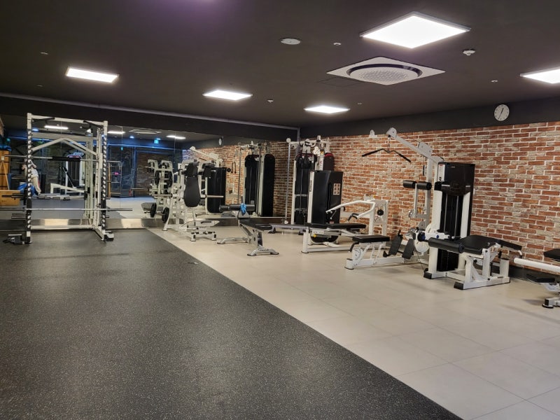 40평 규모의 피트니스 공간은 충분한 공간과 장비 구성을 갖추고 있으며, 여성분들이 운동 시 불편함을 느끼지 않도록 장비 구성 및 스트레칭 운동을 위한 공간을 마련하였습니다. 나는 많은 도구를 가지고 있습니다. 하나씩 소개하겠습니다.