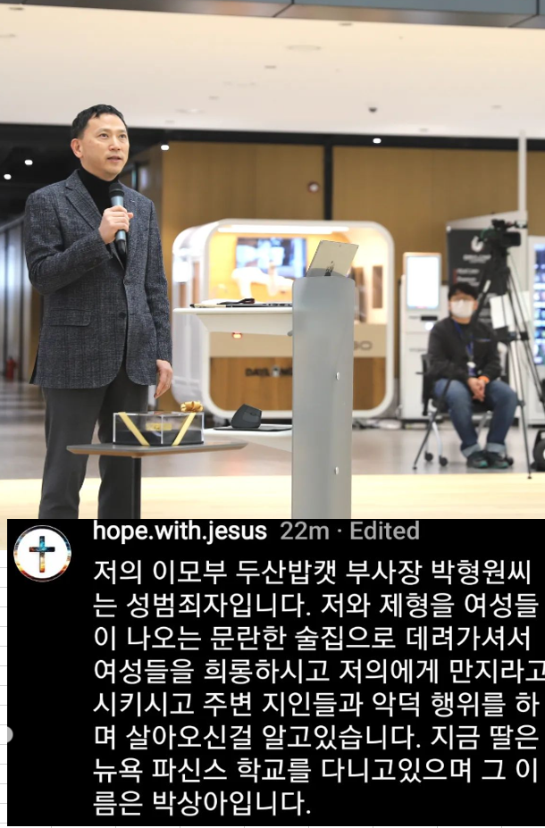 전우원의 삼촌 박형원 두산밥캣 부사장이 성범죄였다고 폭로했다. 친형 전우성과 함께 여자들이 모인 난잡한 술집에 가서 만져달라고 요구하는 등 여성을 희롱하고 주변 지인들과 악덕한 생활을 했다는 사실을 잘 알고 있었다고 밝혔다. 딸은 뉴욕 파슨스 스쿨에 다니며 이름도 박상아라고 밝혔다.