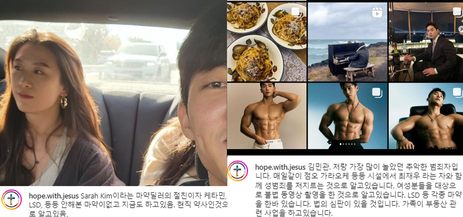 김사라는 마약상과 절친한 사이로 케타민, LSD 등의 마약이 없고 여전히 약을 끊지 못하고 연기하는 약사이자 노래방으로 알려져 최재우와 성범죄를 저질렀고, 노리는 불법 동영상을 촬영했다. 여성을 표적으로 삼아 LSD와 같은 다양한 약물을 복용했습니다.