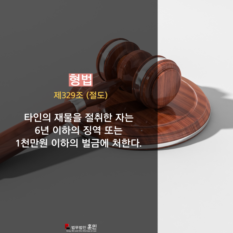 형법 제329조에 규정된 절도죄는 타인의 재물을 절취한 죄로 6년 이하의 징역 또는 1천만원 이하의 벌금에 처한다. 다만, 여기에 있는 재산이나 권리는 재산에 귀속되지 않으며, 타인의 허락 없이 도난을 당해도 이를 반환할 의사가 있는 경우에는 절도죄에 해당하지 않습니다. 처벌은 최대 1/2까지 가중될 수 있습니다.