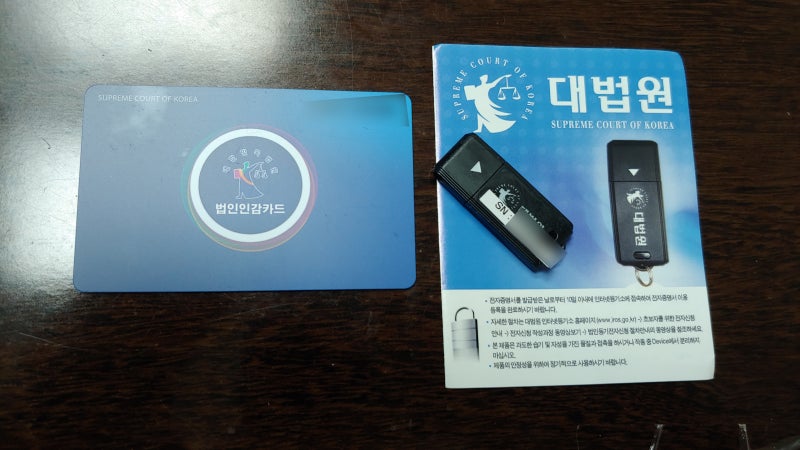 모든 서류를 제출한 후 은색 USB 전자증명서와 법인인감카드 발급을 완료했습니다.